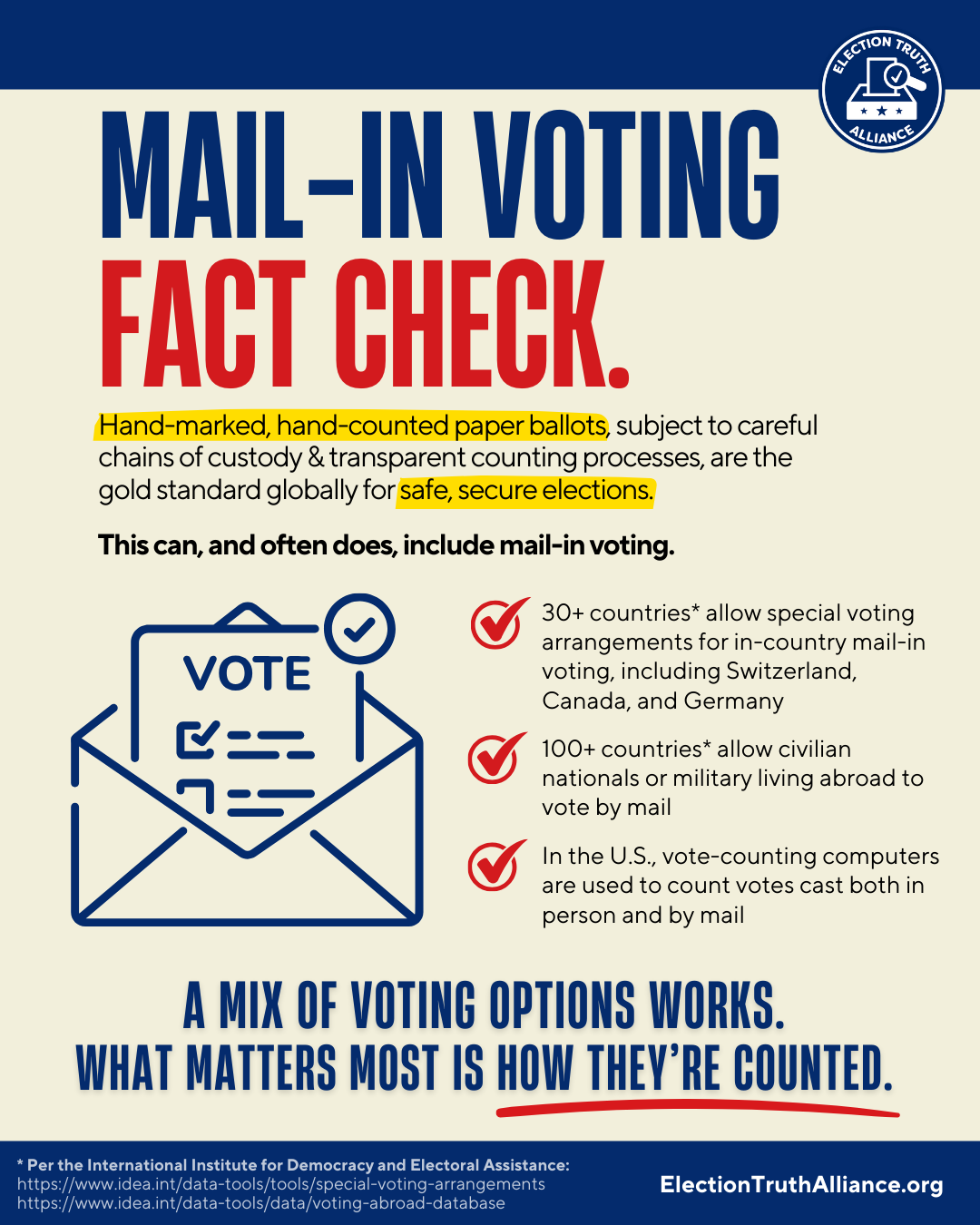 With recent statements and proposed plans to eliminate mail-in voting in the U.S., we at the ETA wanted to highlight some things that are true: